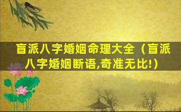 盲 🌻 派八字婚 🐡 姻命理大全解析