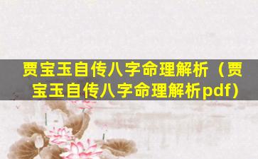 贾宝玉 🐈 自传 🦉 八字 🦍 :