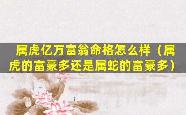 属 🐛 虎亿万富翁 ☘ 命格 🌲