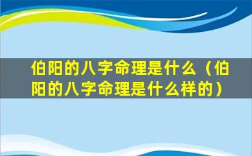 伯阳是一个人名一,般不会有 🐼 八字命理的特定含 🐺 义八字命理是一。种,基。于出生日 💮 期和时间的个人命运预测系统通常需要具体出生年月日时等信息才能进行分析