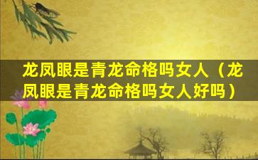 龙 🐎 凤眼是一种眼型特征,不一定与青龙命格有关联 🐛 青龙命格是。中,国,传 🐠 。统命理学中的一种命格通常指出生日八字符合特定条件的人与眼型无关