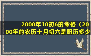 2000年农历十月初六是阳历 🐯 年月 🐳 2001日1128