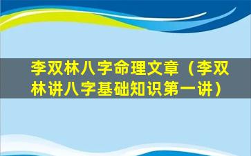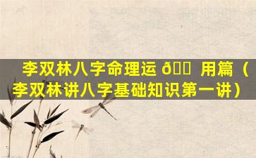 网站名 🐳 称:李 🐴 双林八字命理 ☘ 网