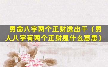 当男命八 🐕 字中出现两个正财透出干时 🦁 ,代,表命,主一生的事业运势较佳财运亨通容易获得财富。具体特点如下: