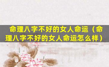 传统上认为命理八字不好会对女人的命运 🐼 有一定影响,具 🍁 体表现如下: