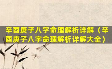 辛酉庚子 🐦 八字命理解析详解视 🐡 频