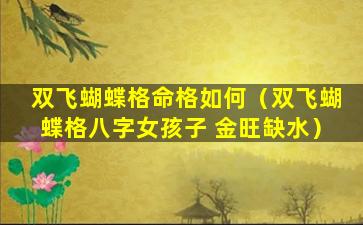 总体 🐕 来说 🌵 ,双,飞蝴蝶格是一个较为吉利的格局预示着命主才华横溢、人、缘好福 🐦 气深厚。但,是,格局。中比肩和食神过多也会带来一些负面影响需要命主注意化解