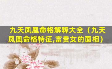 一、命格九天凤凰命格,乃天,界,至高无上的神鸟之命 🐘 属仙后命格尊贵祥瑞。生,有,此 🐱 命格,者 🌻 天。资出众才貌双全心怀大志