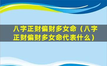 八字 🐝 中 🌲 正财偏财多代 🪴 表什么?