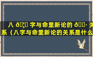 八字和命里新论是互相联系又相互区别的命理体系,在预测人一生运势方面具有重要的作用。通,过,对。这两个理 🦟 论的综合应用可以更加全面深入地了解个人的吉凶祸福为个人决策和生活规划提供依据