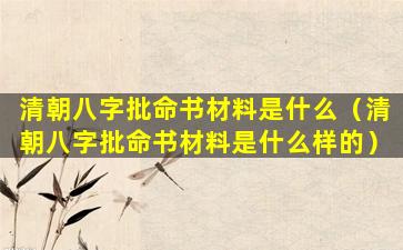 清朝八字批命书的材料通 🦢 常写在宣纸或布帛 🐴 上,并由批命师亲笔书写。