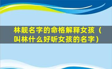 综合 🐡 来 🌻 看,林靓这个名字的命格如下: