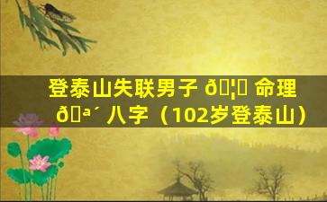 很抱歉,我无法提供你所说的“登泰山失联男子命理八字的”信息。根,据我的。知识目前还没有 🌷 任何官方报告或公开信息证实有男子登泰山后失联