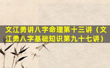文江 🐡 勇讲 🌿 八 🌷 字命理第十三讲