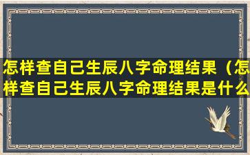 您可以使用八字命理书 🌳 籍、网站或咨询命理 🐳 师来分 🐋 析您的命理结果以。下是需要注意的一些方面: