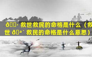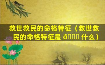 救世 🐶 救民的命格往往格局宏大、五、行、流通 🌹 贵人相扶忌神弱,代、表、着救世、主具有智慧才华爱心魄 🦍 力等特质。