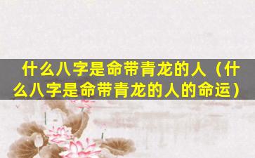 「命帶青龍」並 🕸 非傳統八字命理用語,因此無法提供相關命運資訊。
