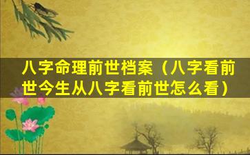 解读前世档 🦟 案需要专业命理师的解读,不可随意解读。