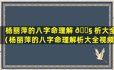 杨丽萍 🦊 八 💮 字命理 🐕