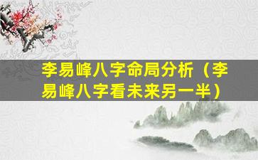 整体评价:李易峰八字命局身旺财旺,食,神,生财主才华出众财源广进。但,忌,神旺。盛,容易。遇到 🌴 小人阻碍事业发展受阻感情方面发展缓慢易受忌神影响产生误会或纠纷