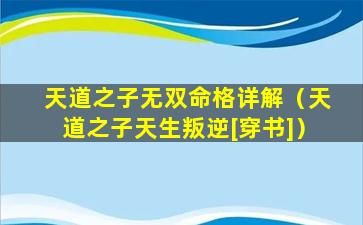 什么是天道 🦉 之 🌼 子无双命格 🐺 ?