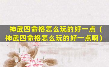 神武四命格系统是个长期积累的过 🌼 程,需 🕊 要耐心和投入。