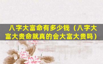 八字 🐺 中的“大富”没有具体的金额 🐺 界定 🦋 。