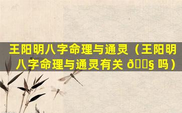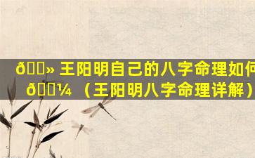 八字 🌷 命理 🦍 与王阳明心学 🌷