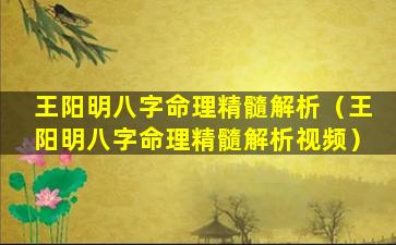 王阳明八 🌻 字命 🐱 理精 🌷 髓解析视频