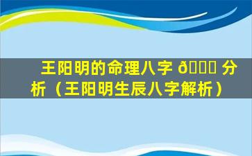 通过 🌻 八字命理学习王阳明的 🐠 思想