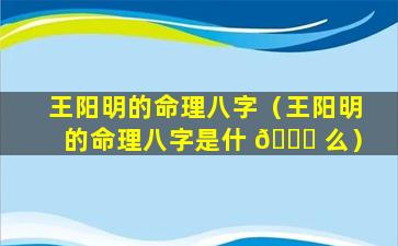 命理精髓偏印格:王阳明八字为偏印格,主,思,维敏捷领 🐦 悟力强注重精神修养。