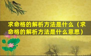 求命格的解析方法是指通过分析一个人的出生日期和时间,来推算其命 🐼 格的方法命格 🪴 是。古,代。中国的一种占卜术认为人的出生时辰决定了其一生的运势求命格的解析方法主要有以下几种: