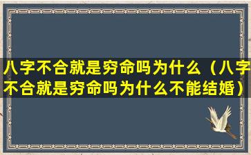 八字 🐶 不合不 🌻 一 🌷 定就代表穷命。