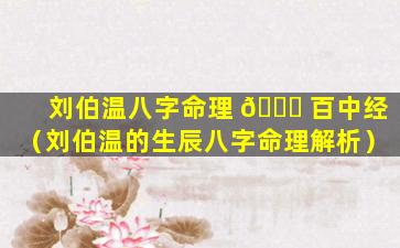 刘 🌿 伯 🐶 温的生辰八字: