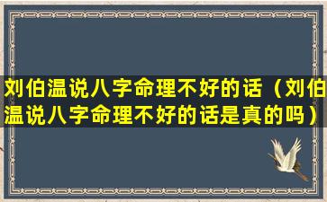 “刘伯温说 🍁 八字命理不好的话”原 🐕 文: