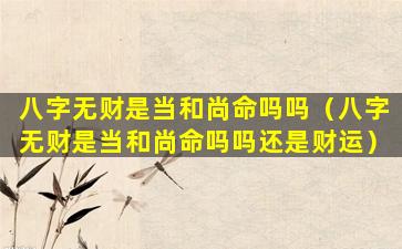 八字 🌺 无财不一定是当和 🌷 尚命 🐅 。