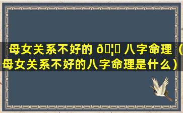 负面解读:过度依赖:如果母女关系过于亲密,可,能会导致女儿过于依赖母亲缺 🐳 乏独立 🐒 性和主见。