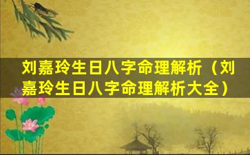 刘嘉 🌵 玲生日八字命理解 🦈 析