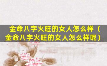 综合来看:金命火旺的女人性格开朗,事,业,有成但情绪 🦄 起 🕊 伏较大婚姻生活易波折。可以通过佩戴水属性饰品、多、接,触。水元素培养水属性爱好等方法来化解火旺之势提升生活各方面的运势