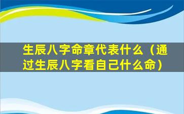 生辰八 💐 字命 🐒 章的 🦅 意义