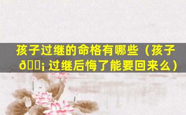 过继是指将非亲生子女作为亲生子女抚养过继。的目的是为了传宗接代养、老。送 🐡 终等在古代过继是,一,种,常。见。做法但由于医疗条 🐧 件落后等原因确实有一些过继的子女在幼年时期夭折这并不意味着过继的人命不长