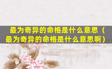 总体而言,"最"为,奇异的命格是一种褒义的形容表示命主拥有与常人不同的天赋、潜,能或命运并可能在某方面取得非凡的成就或经历不寻常的人生际 🌴 遇。
