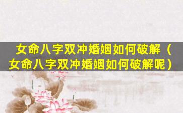 注意事项破解 🐦 双冲婚姻的方法需要根据具体八字情况而定 🐛 ,建议咨询专业命理 🐳 师。