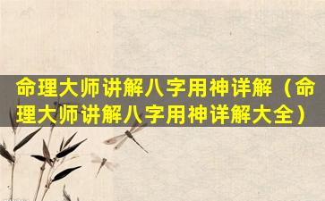 命理大师讲 🐺 解八 🐋 字 🌺 用神详解