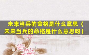 “未来当兵的命格”通常指八字中带有与军旅相关的星宿或神煞,预,示着该人在未来可能从事 🕊 军职或者 🐶 与军队 🦄 有缘。