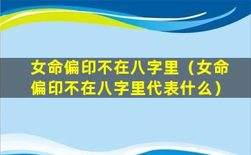 “女命偏印不在八字里”的意思是女,性 🐘 的八字 🕸 命理 🐝 中没有偏印星。