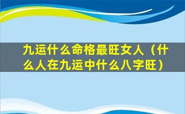 九运旺女命格 🐅