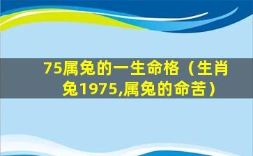 这种说法没有任何根据。1975年出生的属兔人,其,一生命运如何取决于 🌷 多种因素如出生日期出生、地、个。人。努力和生活经历没有任何科学证据表明属兔的人会比其他生肖的人遭遇更差的命运