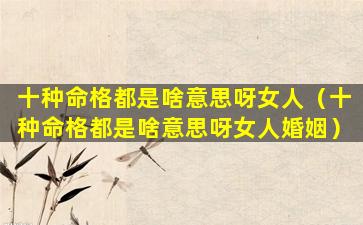 十种命格对于女性婚姻的 🕊 影 🌾 响:
