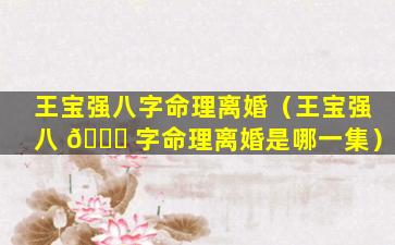 王宝强八 🐎 字命理离婚事件没有出现在电视节 🌹 目中,因此不存在哪一集的说法。